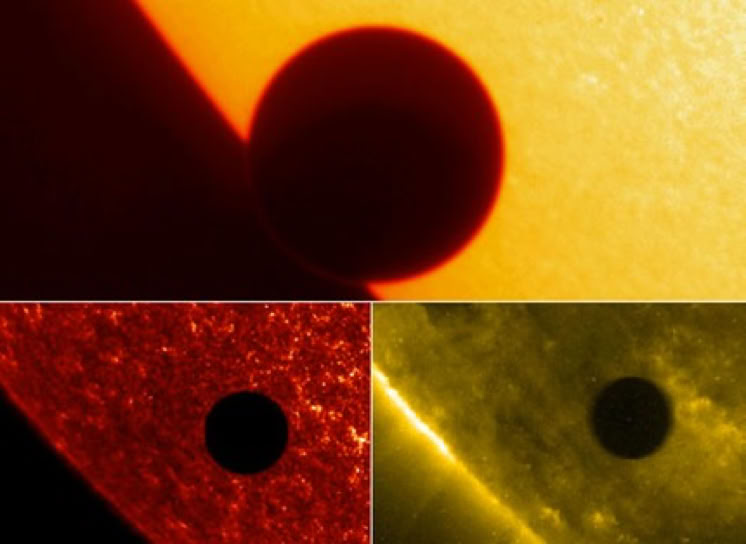 NASA joined the world in viewing a rare celestial event, one not seen by any person now alive. The planet Venus appeared to cross in front of the Sun as seen from Earth. The last 'Venus transit' occurred more than a century ago, in 1882, and was used to compute the distance from the Earth to the Sun. If people missed the June 8 Venus transit, they will have another chance in 2012 (June 6). After that, there will not be another Venus transit until 2117 (December 11).